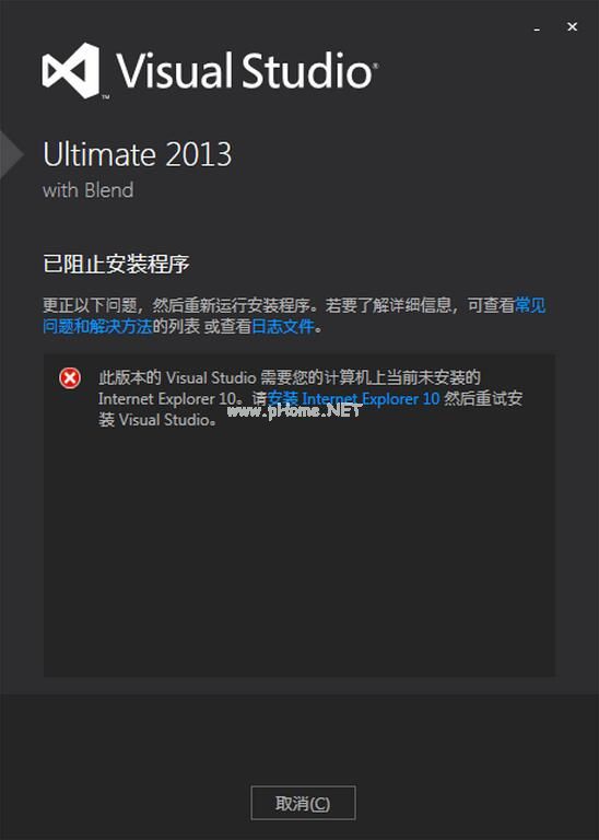 对就会告诉我们目前环境不适合安装VS2013,必须升级工业管理学(工业工程)版本到IE10 .