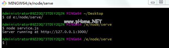 我们首先创建一个项目目录,它可以由我们自己定义。本例中的目录是e:/node/serve。