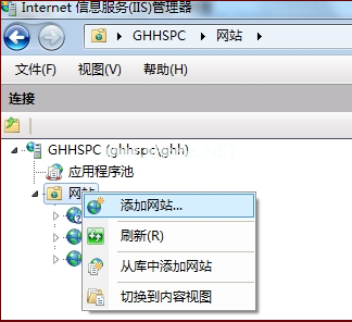 通过“控制面板”中的“管理工具”启动“互联网信息服务(IIS)管理器”,进入IIS界面。
