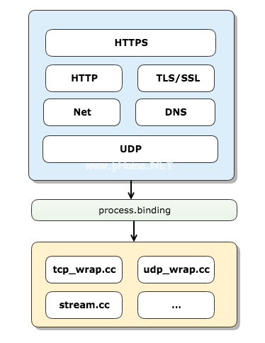 在Node.js的模块中,与网络相关的模块有net、DNS、HTTP、TLS/SSL、HTTPS、UDP/Datagram,另外与v8相关的网络模块有tcp_wrap.cc、udp_wrap.cc、pipe_wrap.cc、stream_wrap.cc等。在Javascript层和c。