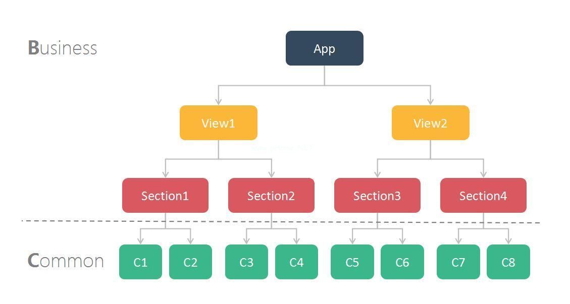 当组件足够简单时,我们可以自由地将这些组件组合在一个更大的业务组件中,以实现我们的业务功能。因此,理想情况下,组件的参考电平只有两个级别。业务组件指的是通用组件。