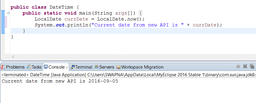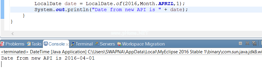 LocalDate的默认格式是YYYY-MM-DD,没有时间。这是一个不可变的类。我们可以使用now()方法获取当前日期。