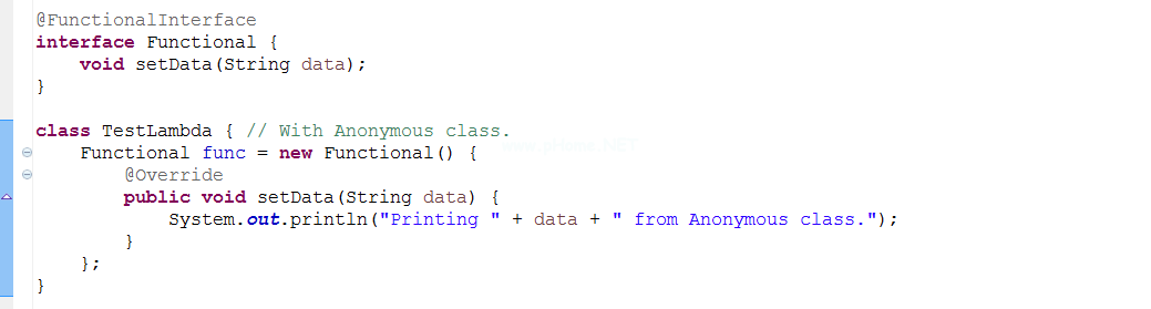 @FunctionalInterface注释可以用在接口声明的顶部声明中,但这不是必需的。编译器使用此注释来检查接口是否是有效的功能接口。如果我们试图在接口中定义多个单一的抽象方法,编译器会抛出一个错误。