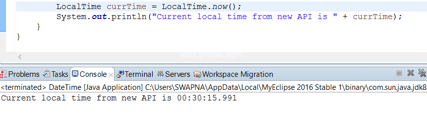 LocalTime表示没有日期的时间,它是常数。时间的默认格式是hh : mm : ss.zzz。