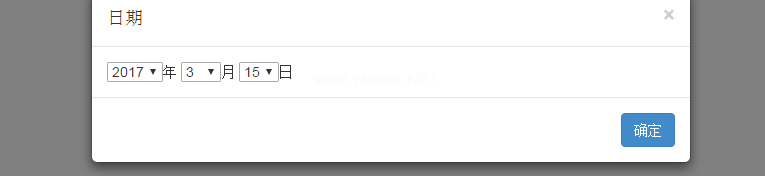 //最后,添加click事件$(“#排队”)。click(function(){ varnian=$(' # nian ')。val();var yue=$('#yue ')。val();var tian=$('#tian ')。val();$('#rq ')。val(年'-'月'-'天);$('#myModal ')。情态(' hide ');})点击关闭模态框,传输数据;