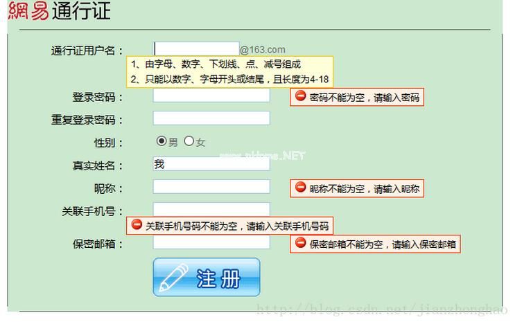 今天研究了网易"用户注册表单"与"及时验证功能",不得不说,无论是它的布局结构,还是验证功能,都是刷新了本真人的眼界,居然可以这样!