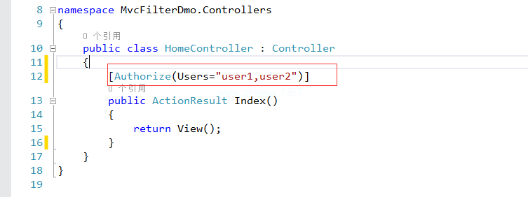 AuthorizeAttribute是一个内置在MVC框架中的授权过滤器,它允许我们使用这个类的两个公共属性来指定授权策略,如下所示: