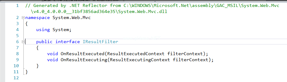结果过滤器是一个多用途过滤器,可以操作动作方法生成的结果。结果过滤器实现了IResultFilter接口。创建自定义结果过滤器需要IResultFilter接口。界面代码如下: