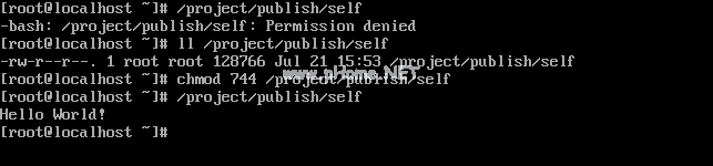 修改可执行权限后,就可以成功运行“Hello World”了,这就是我们的“自带应用”的部署方式
