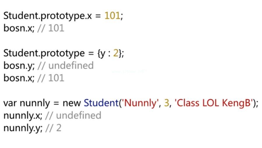 如果我们修改玻色子原型上的属性,玻色子就会受到影响。需要注意的是,如果玻色子的原型对象被修改,玻色子不会改变。对于创建的实例,修改原型对象不会改变实例。