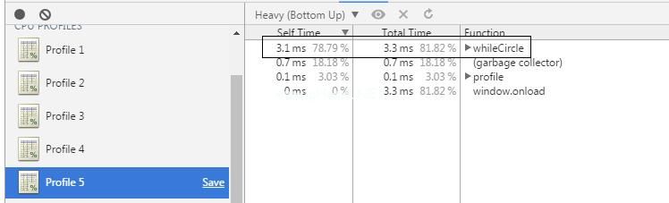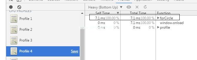 window . onload=function(){ var items=Array(1000000)。连接(',')。拆分(',')。map(函数(项,索引){ return index});console . log(for circle())console . log(while circle())console . log(Docircle())函数for circle(){ console . profile();var currTime=新日期();var tal=0;for(var I=0;一.项目.长度;i ){ tal=tal流程(项目[I]);} console . profile end();console . log(' for circle time:“(new Date()-curr time)' ms ');返回tal}函数while ecrcle(){ console . profile();var currTime=新日期();var tal=0;var j=0;while(j items . length){ tal=tal process(items[j]);} console . profile end();console . log(' while circle time:“(new Date()-curr time)' ms ');返回tal} function Docircle(){ console . profile();var currTime=新日期();var tal=0;var k=0;do { tal=tal process(items[k]);} while(k items . length)console . profile end();控制台。日志(' doccycle使用的时间:'(new Date()-curr time)' ms ');返回tal}功能流程(项目){返回项目* 100;}}获取测试结果: