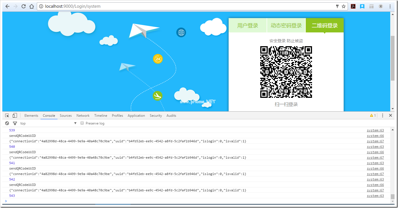 相信大家都会熟悉使用微信扫描登录。二维码和手机的结合产生了不同的应用场景,基于二维码的应用更加广泛。为了满足ios、android客户端与web短信平台的结合,专门开发了基于SinglarR消息推送机制的扫描登录。该系统涉及以下知识点: