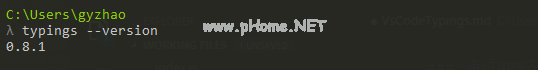 安装完成后,我们需要安装相应的类型信息文件,需要提示函数库或框架。在这里,我们创建一个新的文件夹NodeSnippet,使用命令行进入目录,输入以下两个命令分别安装Node和Lodash的类型接口信息文件: