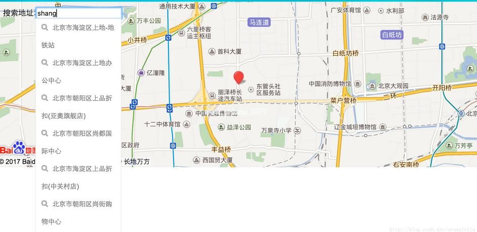 !DOCTYPE html html head meta http-equiv=' Content-Type ' Content=' text/html;charset=utf-8 '/meta name=' viewport ' content=' initial-scale=1.0,user-scalable=no '/style type=' text/CSS ' body,html { width : 100%;高度: 100%;余量:0字体系列: '微软雅黑;font-size :14 px} # l-map { height :300 px;宽度:100%;} # r-结果{宽度:100%;}/样式脚本类型=' text/JavaScript ' src=' http :http://API。地图。百度。com/API?v=1.4 /脚本标题关键字输入提示词条/title/head body div id=' l-map '/div/body/html脚本类型=' text/JavaScript '//百度地图应用程序接口功能函数G(id){返回文档。getelementbyid(id);} var映射=新的BMap .地图(“l-map”);map.centerAndZoom('北京',10);//初始化地图,设置城市和地图级别。 //定义一个控件类,即函数函数ZoomControl(){ this。default ANCHOR=BMAP _ ANCHOR _ TOP _ LEFT;this.defaultOffset=新的BMap .尺寸(10,10);} //通过Java脚本语言的原型属性继承于BMap .控制动物控制。原型=新的BMap .control();//自定义控件必须实现自己的初始化方法,并且将控件的数字正射影像图元素返回//在本方法中创建个差异元素作为控件的容器,并将其添加到地图容器中zoomcontrol。原型。initialize=function(map){//创建一个数字正射影像图元素var div=文档。创建元素(' div ');div.innerHTML='div id='r-result '搜索地址:输入类型='text' id='暗示size='20' value='百度style=' width :150 px//div div id=' search result panel ' style=' border :1 px solid # C0C 0;宽度width :150 pxh three : auto display : none/div ';//添加数字正射影像图元素到地图中map.getContainer().appendChild(div);//将数字正射影像图元素返回返回div} //创建控件var myZoomCtrl=new ZoomControl();//添加到地图当中地图。add control(myzoomtrl);var ac=新的BMap .自动完成(//建立一个自动完成的对象{'input' : '暗示tId ','位置' :地图});空调。addeventlistener('高亮显示时',函数(e) { //鼠标放在下拉列表上的事件var str=var _ value=e . from item。价值;定义变量值=' ';如果(例如从项目。index-1){ value=_ value。savage _ value。城市价值。地区值。街道_价值。商业;} str=' FromItem br/index=' e . FromItem。索引“br/value=”值;值=' ';如果(例如toitem。index-1){ _ value=e . toitem。价值;value=_ value。savage _ value。城市价值。地区值。街道_价值。商业;} str=' br/ToItembr/index=' e . toitem。索引“br/value=”值;G('searchResultPanel ').innerHTML=str });var myvalueac . addeventlistener(' onconfirm ',函数(e) { //鼠标点击下拉列表后的事件var _ value=e . item价值;myValue=_value。省得_ VaLue。city _ VaLue。学区_ VaLue。street _ VaLue。商业;G('searchResultPanel ').innerHTMl=' onconfirmbr/index=' e . item。索引“br/MyVaLue=”MyVaLue;set place();});函数setPlace(){ map。清除覆盖();//清除地图上所有覆盖物函数myFun(){ var pp=local.getResults().getPoi(0).点;//获取第一个智能搜索的结果map.centerAndZoom(第14页);map.addOverlay(新BMap .标记(PP));//添加标注} var local=新的BMap .LocalSearch(地图,{ //智能搜索onsearchccomplete : my fun });本地的。搜索(MyVaLue);}/脚本以上就是本文的全部内容,希望对大家的学习有所帮助,也希望大家多多支持我们。