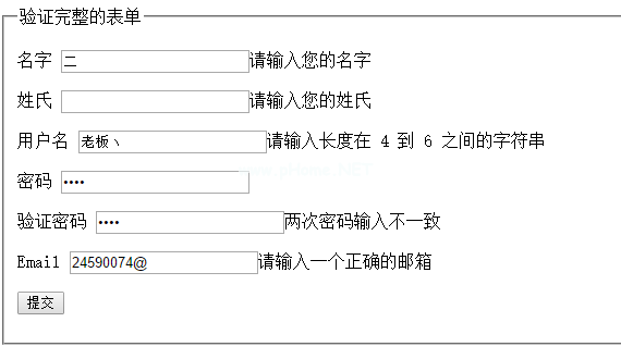$(function(){ $('#commentForm '))。validate({ rule s : { first name : { required d : true,minlength: 5 },lastname: 'required ',username : { required d : true,rangelength: [4,6]),password : { required d : true,minlength: 4,number: true },confirm _ password 3: { required d 3: true});效果: