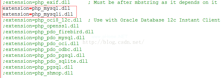 (2)打开php.ini文件查找;extension=php _ mysql.dll扩展名=php _ mysqli.dll删除了前面的“;”下图