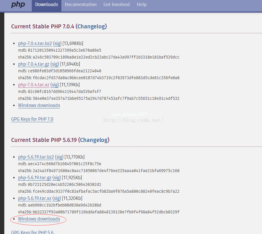 Php Apache Mysql下载Php下载:http://www.php.net进入php官网,点击下载进入如下界面。上面显示了不同的版本。我选择了PHP版本php5.6.19,相对稳定。如果没有版本要求,建议使用这个版本。在Windows环境下开发php,所以继续点击图片中的Windows下载,下载压缩包。