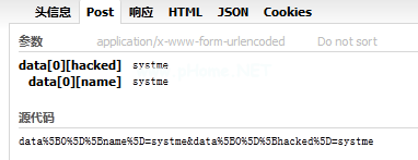 我们可以清楚地看到它是一个数组,所以我们应该以数据的形式来勾画它[{ ' name ' : ' systeme ',' hacked ' : ' systeme ' }],这是完全没有问题的。