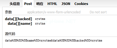 $.ajax('test.php ',{ ' data ' :[{ ' name ' : ' systme ',' hacked':'systme'}]},function(){ alert(' ok ')});OK就是这么简单的要求。php直接转储我传递的数据。让我们来看看发生了什么奇怪的事件。