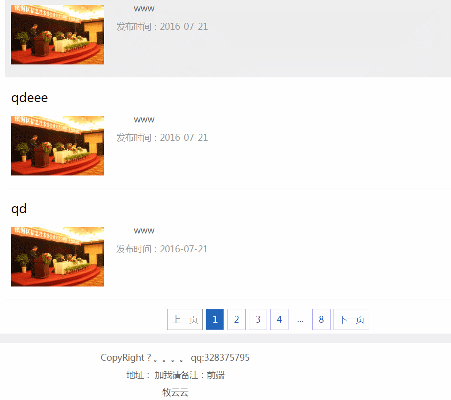 下面我先上网页前台和管理端的部分分页效果图,他们用的是一套代码。