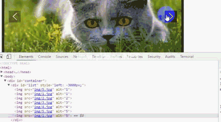 div id=' container ' div id=' list ' style=' left :-600 px;'img src=' http : img/5 . jpg ' alt=' 1 '/img src=' http : img/1 . jpg ' alt=' 1 '/img src=' http 3: img/2 . jpg ' alt=' 2 '/img src=' http : img/3 . jpg ' alt=' 3 '/img src=' http 3360 img/4 . jpg ' alt='id=' prev ' class=' arrow '/a a href=' JavaScript :'Id='next' class='arrow'/a /div优化,无缝滚动。