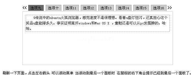 这是一个基于jQuery的标签页,清新朴实,模仿腾讯的迷你主页。标签前后可以有一个控制箭头。单击这两个箭头控制选项卡向左和向右滚动。在有限的网络空间中布局更多的内容是可能的。我相信你会喜欢的。