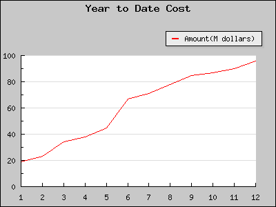 ?PHP include(' src/jpgraph . PHP ');include(' src/jpgraph _ line . PHP ');//将用于创建图表的数据存储在数组中$ data=array (19,23,34,38,45,67,71,78,85,87,90,96);$graph=新Graph(400,300);//创建新的Graph对象$ Graph-SetScale(' text Lin ');//设置比例尺样式$ graph-img-设置边距(30,30,80,30);//设置图形边界$ graph-title-set('年初至今成本');//设置图表标题//创建线性图$线图=新线图($ data);//创建新的LinePlot对象$ lineplot-setlegend ('amount (m美元)');//设置图例文本$lineplot-SetColor('红色');//设置曲线的颜色//将图添加到graph $ graph-add($ line plot);//在统计图上画一条曲线//显示图形$ graph-Stroke();//输出图像?操作后的渲染如下:
