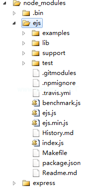 例如,我们在这里使用ejs模板和express模块,然后我们好奇地走进ejs程序,看看有什么不同