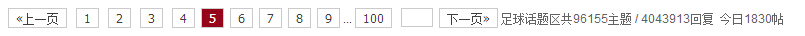 2.虎扑主题(http://bbs.hupu.com/topic-5)的页码包括“上一页”、“下一页”、具体页码、手动跳转到哪一页、信息等元素,还包括第一页和最后一页,只不过这里的第一页和最后一页是用具体页码而不是用文字来表示的。前后分页偏移量为4页。博客公园(http://www.cnblogs.com/cate/php/#p12)的列表页面也是这样处理的。