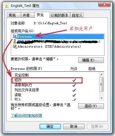解决方案,转到网站目录的属性,安全标签,添加用户(所有人),并授予修改权限: