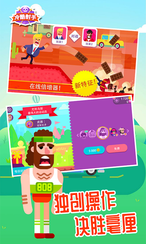 冷酷射手是一款很有意思的卡通射击类型的游戏,在游戏中的各种玩法都是非常有意思的,操作简单方便,画质很清晰,玩家可以自由的体验各种射击的手法来进行挑战,十分有趣。