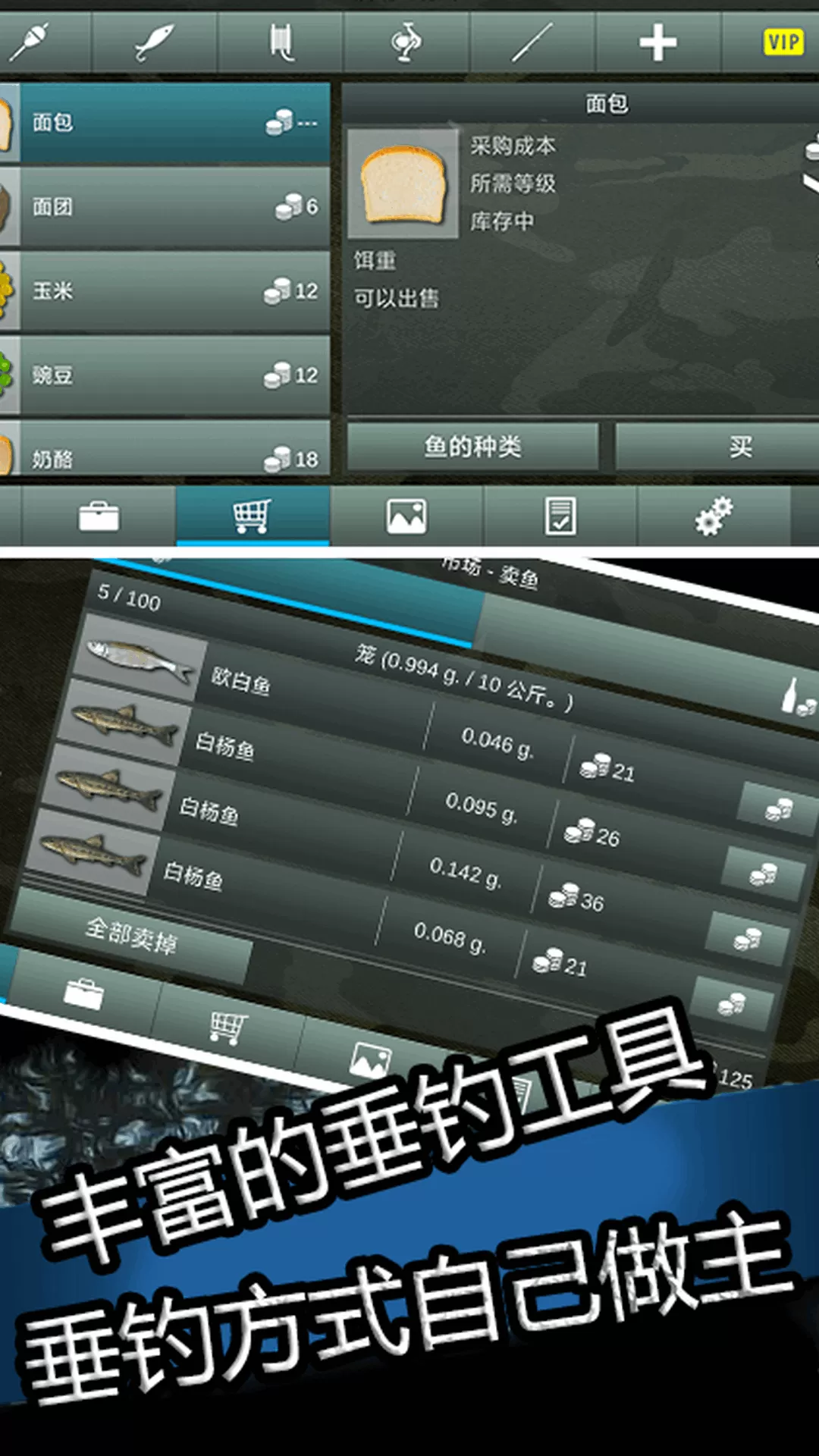 1. 装备升级系统:玩家可以通过赚取金币和道具,升级钓竿、鱼线和鱼饵,提高钓鱼的成功率和效率。