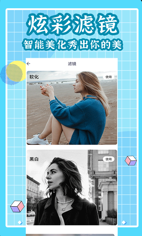 2. 图片编辑:提供裁剪、旋转、滤镜、美颜等多种编辑工具,提升照片质感。