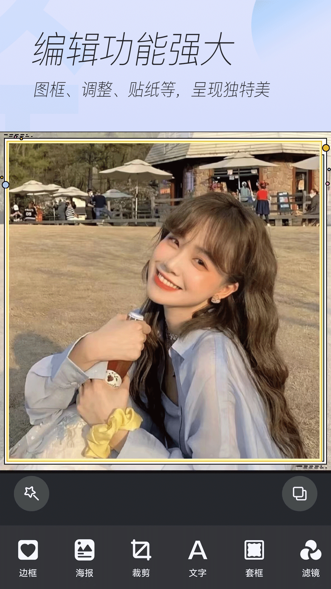 3. 贴纸和文字添加:丰富的贴纸素材和字体样式,增强照片趣味性和个性化表达。
