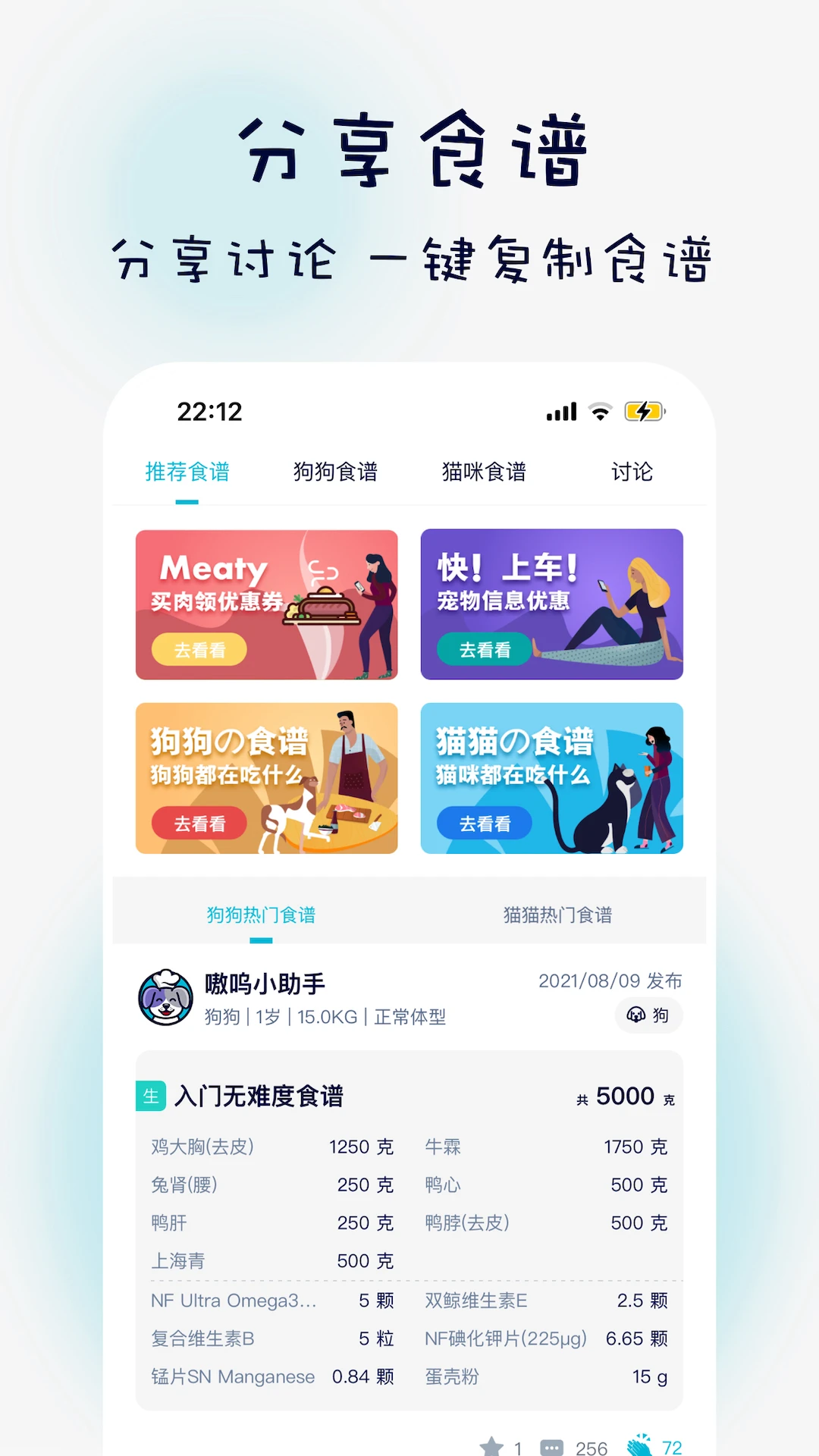 1. 丰富的食谱库:内置海量猫狗食谱,涵盖不同年龄、体重和健康状况的宠物需求。