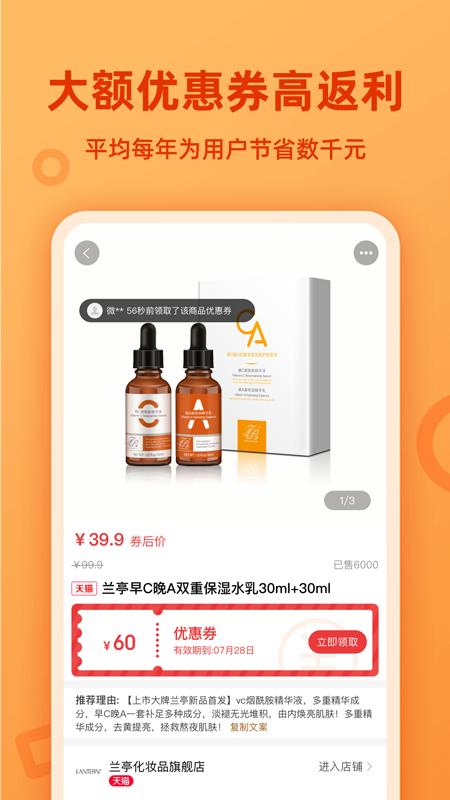 3. 优惠券来源真实可靠,应用内商品链接直达官方电商平台。