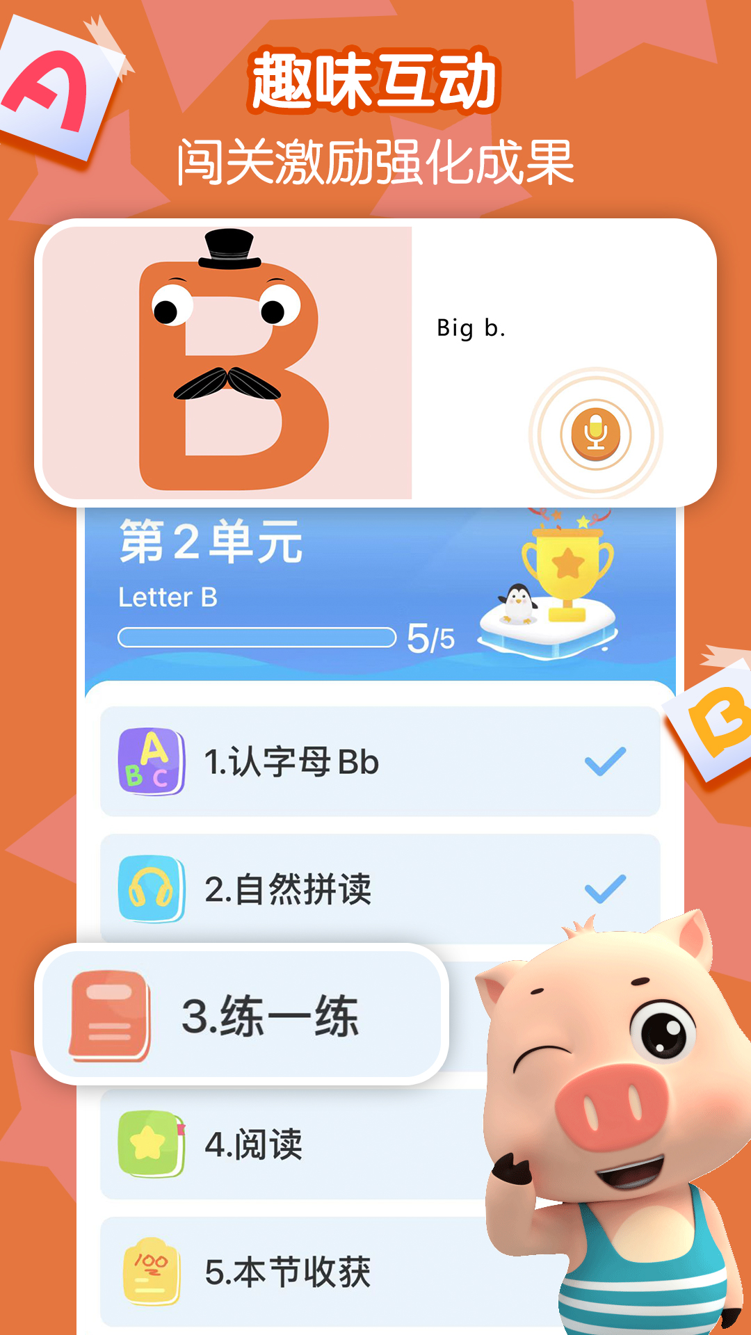 5. 多种游戏闯关设计,寓教于乐,让学习过程更轻松有趣。