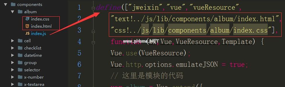用require.js组织您的组件。我们将有一个组件目录来放置我们的组件。每个组件都有一个以自己的名字命名的文件夹。例如,在这个例子中,相册组件,有html,js和css的这个组件。如何使用require.js加载html和css?你可以下载一次相关的插件。因此,这个组件的js可以加载define中所有相关的依赖项,最后返回组件。其他组件也可以通过define加载这个组件,也达到了组件模块化管理的目的。