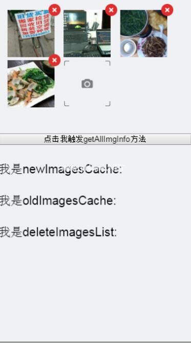 Delete image :函数(索引,相册){//比较要删除的照片是否在初始化照片中为(var I=0,len=this . oldimagescache . length;我透镜;I){ if(album . localid===_ oldImagesCache[I]){ this . deleteimageslist . push(_ oldImagesCache[index]);} } this.canEdit this .相册. $remove(相册);}6.当图片等于最大图片数时,最后一个小相机图案消失v-if="相册。长度9英寸
