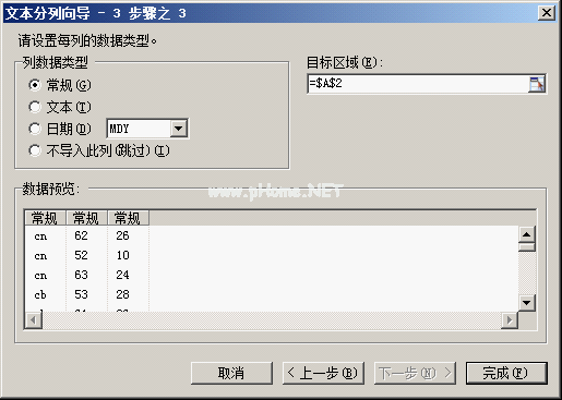 操作同例3。在步骤2中,您不需要设置列和行。直接进入第3步设置标准日期格式。