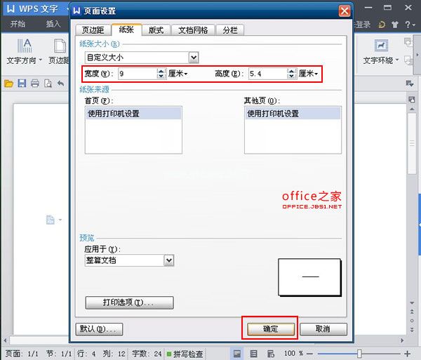 首先调出页面设置对话框,将上下左右页边距设置为“0”,纸张尺寸设置为“自定义尺寸”,宽度设置为“9”,高度设置为“5.4”。您可以根据需要调整字体、大小、颜色和其他格式。