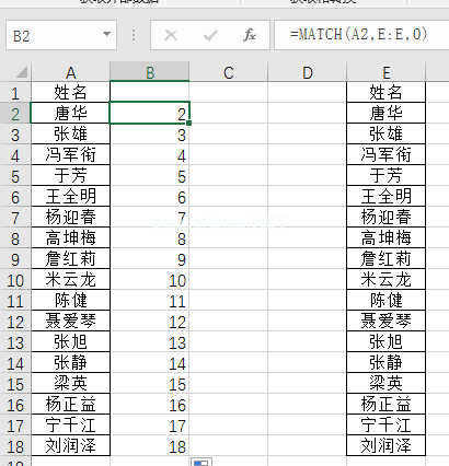 =MATCH(A2,E:E,0)表示使用A2单元格在e列进行搜索,0表示精确搜索,1小于,-1大于,这通常是精确搜索。Match (A3B3,$ H $3: $ H $19 $ I $: $ I $19,0)表示A3和B3合并为搜索内容,H列和I列合并为搜索区域,0表示精确搜索。