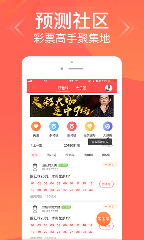 1、具有10000位彩票专家为您提供彩票的预测数据,支持彩3d、排列三、排列五、七星彩、七乐彩等多个彩种的预测,还有预测数据的排行榜哦;