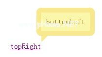 4、角值超文本标记语言如下所示:复制代码代码如下: div id=' content ' style=' margin-top :200 px;'左边距'左侧:200像素'角值代码:复制代码代码如下:脚本类型=' text/JavaScript ' var corners='左下角';定义变量对立面=' topRight$(文档)。ready(function() { $('#content a ')).悬停(function() { $(this)).html(反义词)。qtip({ content: corners,position : { corners : { tooltip : corners,target : reverse } }),show: { when: false,ready: true },hide: false,style : { border : { width 333: 5,radius: 10 },padding: 10,textAlign:});/script效果如图所示