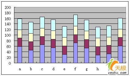 将辅助数据系列复制粘贴到数据表中,或者将数据和辅助数据一起选择,构建堆叠柱形图,效果如图3所示。