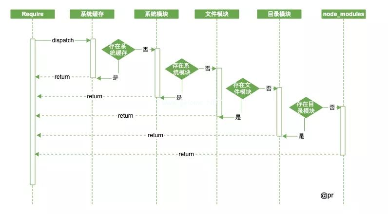 系统缓存,一个模块执行后会被缓存,提高重装速度;系统模块,即原生模块,部分核心模块已经编译成二进制,省略了路径分析和文件定位,将直接加载到内存中,其中系统模块定义在源代码的lib目录中;文件模块,从.和/,将尝试根据补充扩展。js,json和。节点(扩展名不添加到文件中),最好添加文件的扩展名。加载过程中找不到目录模块和文件模块,但如果找到相同的目录名称,该目录将被视为一个包。这一块采用了Commonjs规范,可以在文件package.json中找到;节点模块模块。如果系统模块和路径文件模块都找不到,Node.js将从当前模块的父目录搜索到系统的根目录。