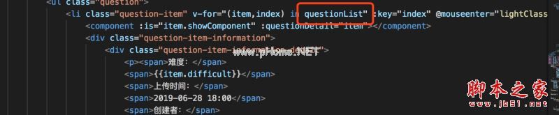 需要注意的是,在子组件中接收父组件的数据参数必须与父组件传递的参数一致,如上图中的questionList