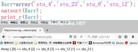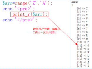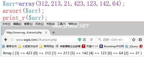 函数:将数组从大到小排序,但也保留下标。语法:arsort($ arr)