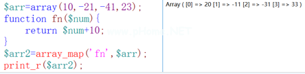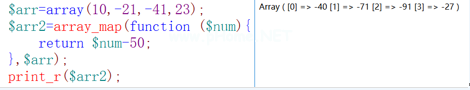 语法:array_map(函数名,$arr)用于获取数组中每个元素的值,然后执行函数。