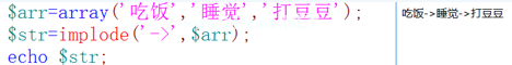 函数:将数组拆分成字符串。语法:隐式(字符串,$ arr)